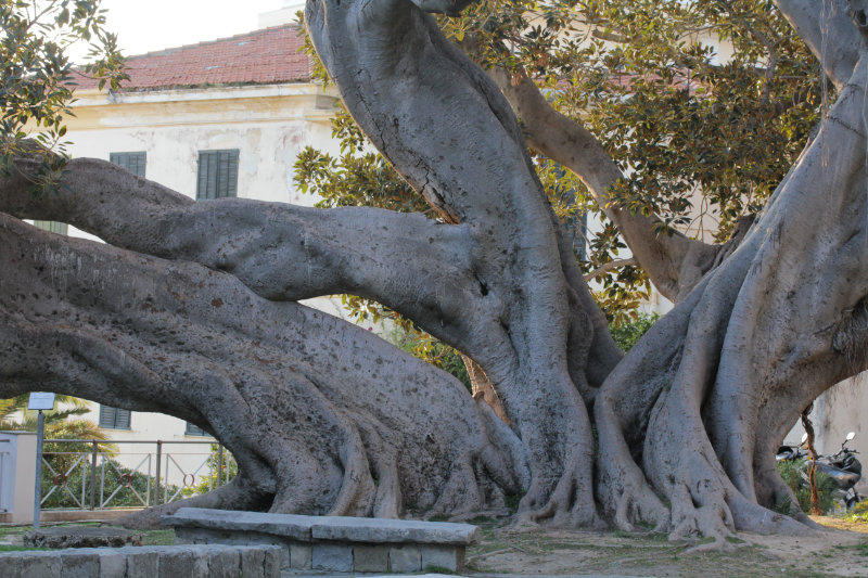 A l’entrée de la vieille ville deux superbes ficus magistraux accueillent les visiteurs (Ficus macrophylla).