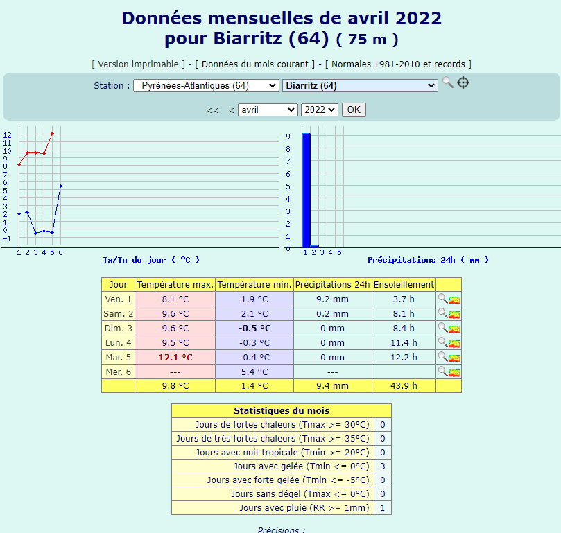 - à Biarritz, 3 jours de gels consécutifs en avril.
