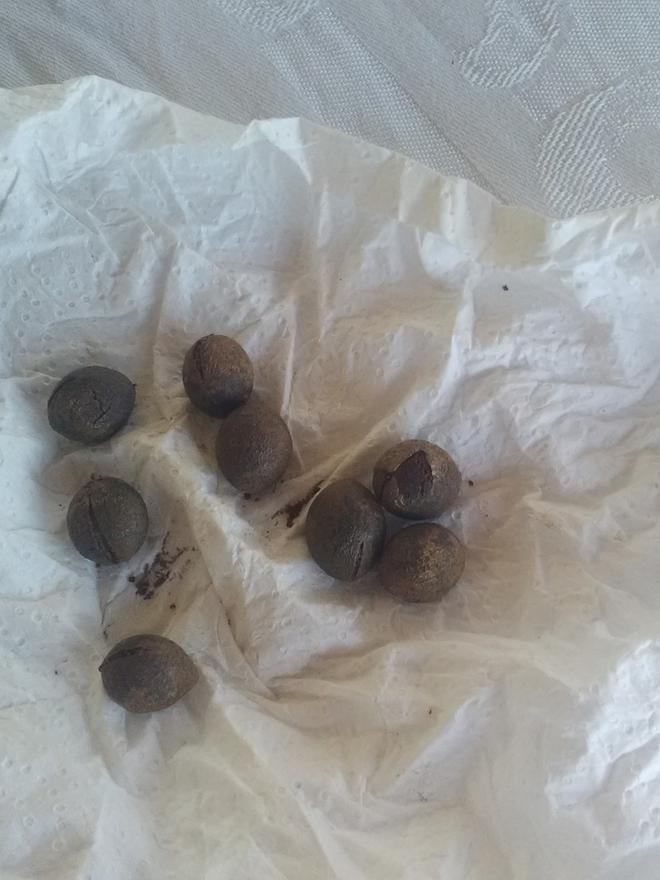 Reçu aujourd'hui ces quelques graines de gevuina en provenance du chili. Je les ai mises à tremper dans un bol d'eau, le tout au frigo. D'ici 24 heures j'en tenterais le semis.