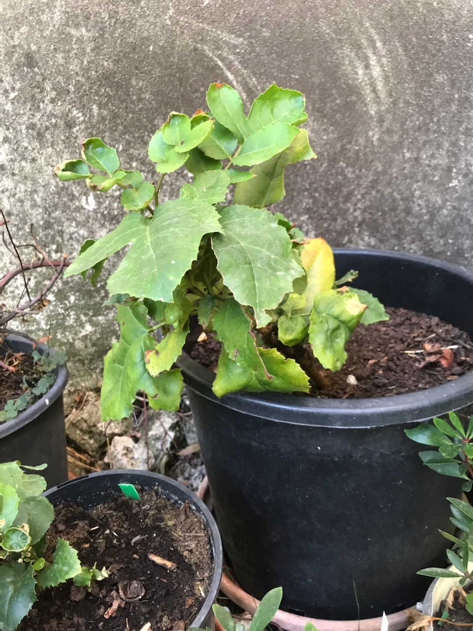 Je serai surpris que cela soit causé par la terre car je l'ai planté en janvier dans un trou assez profond rempli de vieux composte et de sable de rivière. Les racines n'auraient pas déjà atteint la terre du terrain ?