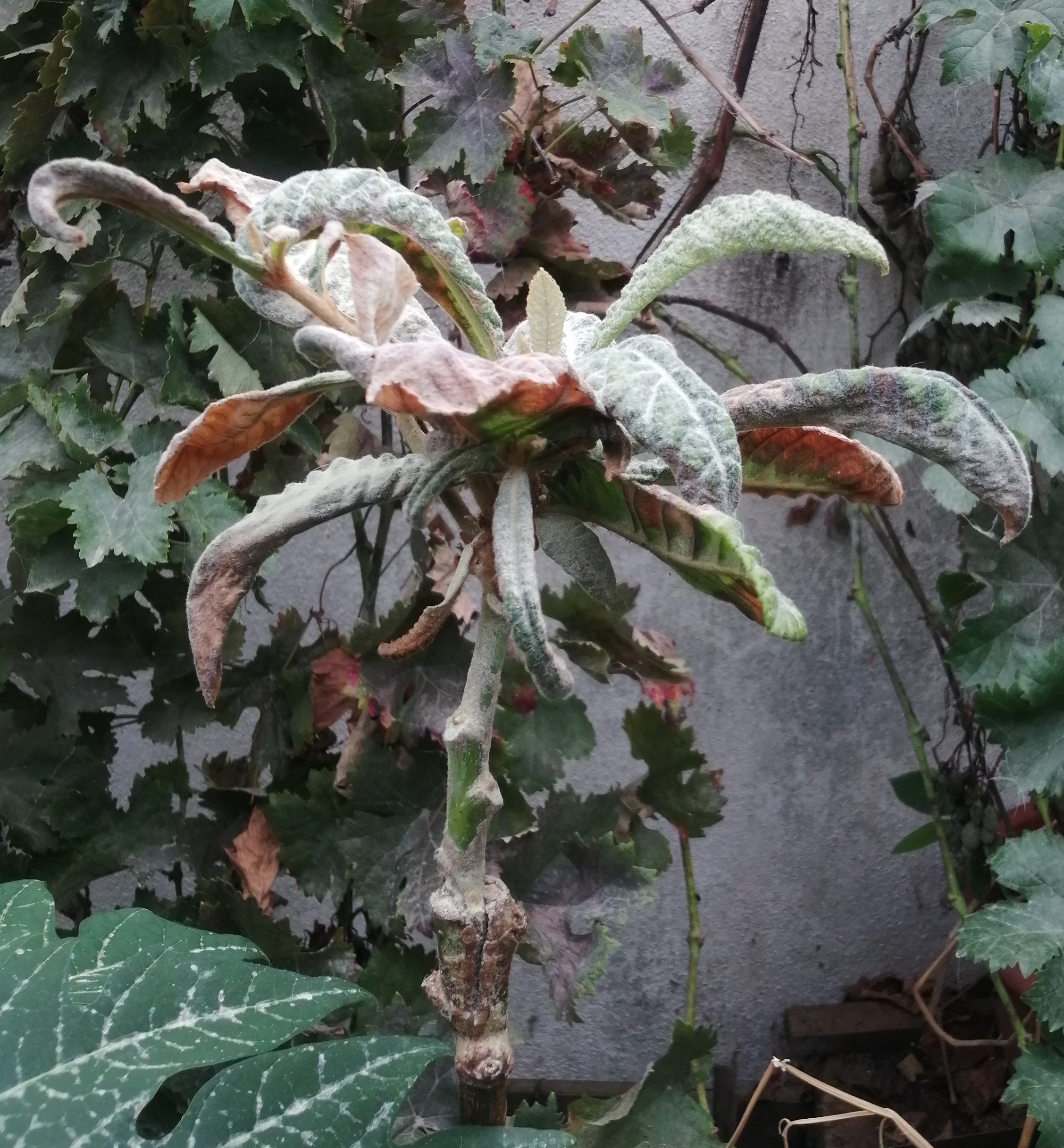 Par contre aprés avoir bien démarré les feuilles sont maintenant malades (alors qu il est a quelques centimetres du pied mere qui parait en pleine forme). J ai mis un peu de souffre mais j ignore si ce sera efficace.