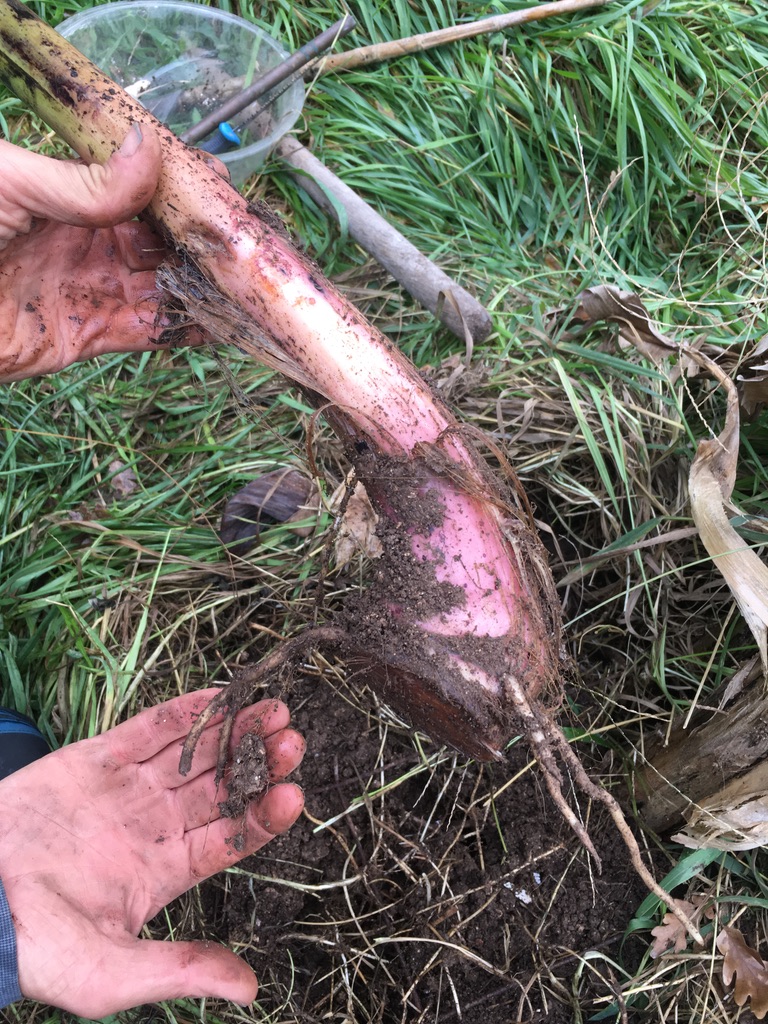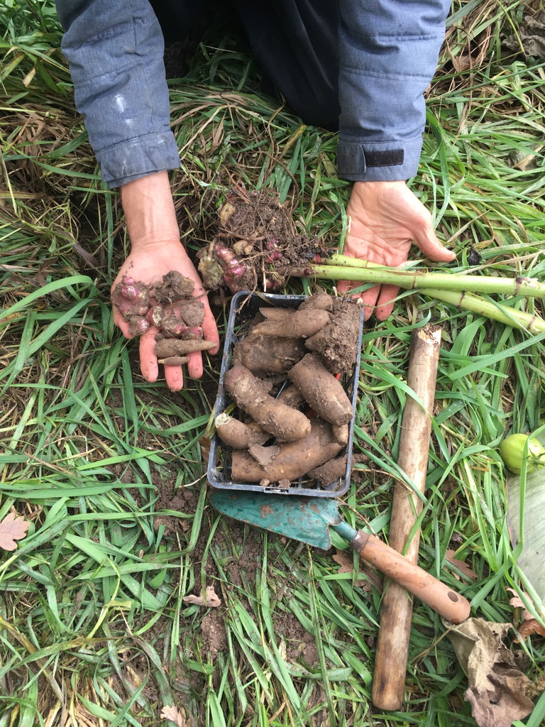davantage de racines déterrées: la douceur du gout est dans les petits bulbilles rouges (utilisés pour replanter), ainsi que dans les grosses racines mais ces dernières devraient sécher quelques jours avant d'etre degustées, toujours aussi croquantes et juteuses, mais elles sont un peu acres le jour de la récolte