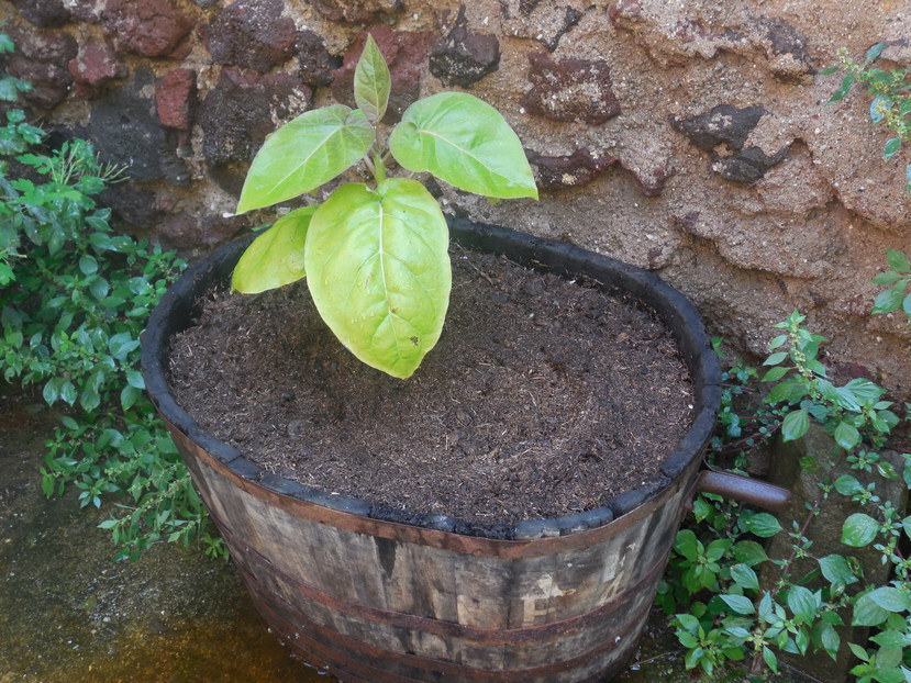 Tomate en arbre classique( solanum betaceum la cousine ) que je viens de planter dans une ancienne comporte en bois .Vous pourrez les trouver au