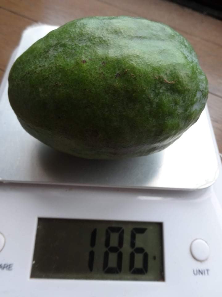 Voici la photo du fruit de Dan's choice. Une très bonne variété de NZ. Photo d'un copain chinois qui a l'intention d'inonder le marché de fruit de feijoa. Au vu de la qualité qu'il plante.... ça va vite arriver en France. Avec un paquaging très réfléchi.