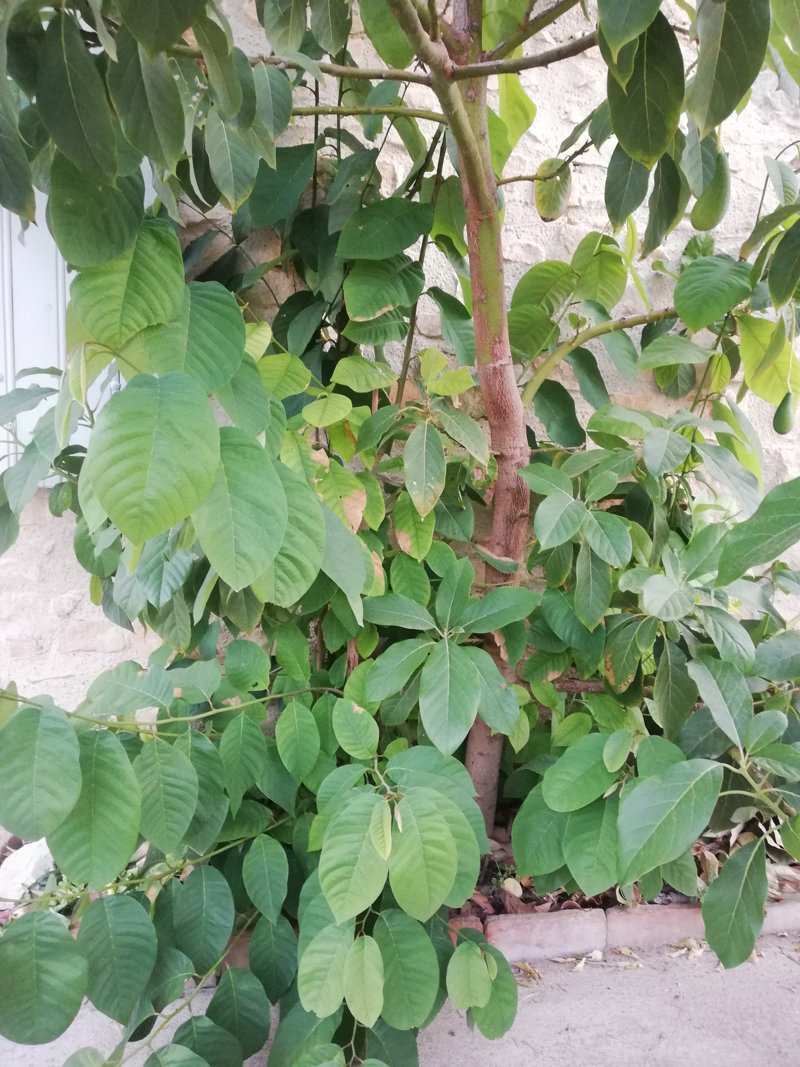- Voici un petit bout de terre face au mazet où dans moins d'un m², il y a : un avocatier de 3 m, 4 cherimoya de 1.2 m à 1.9 m et un autre arbre inconnu. Certes c'est la pagaille, mais ils poussent bien mieux que les sujets isolés !