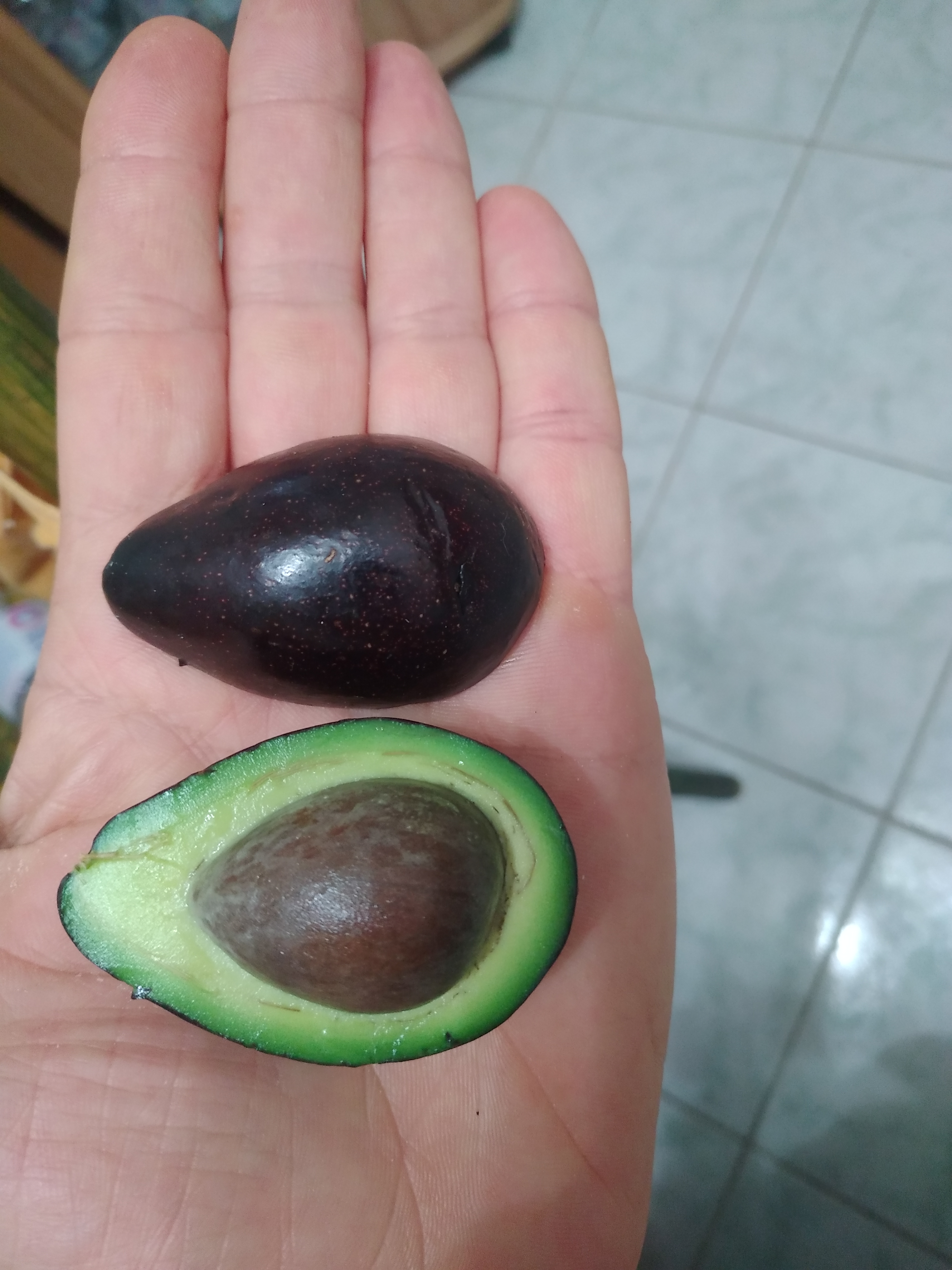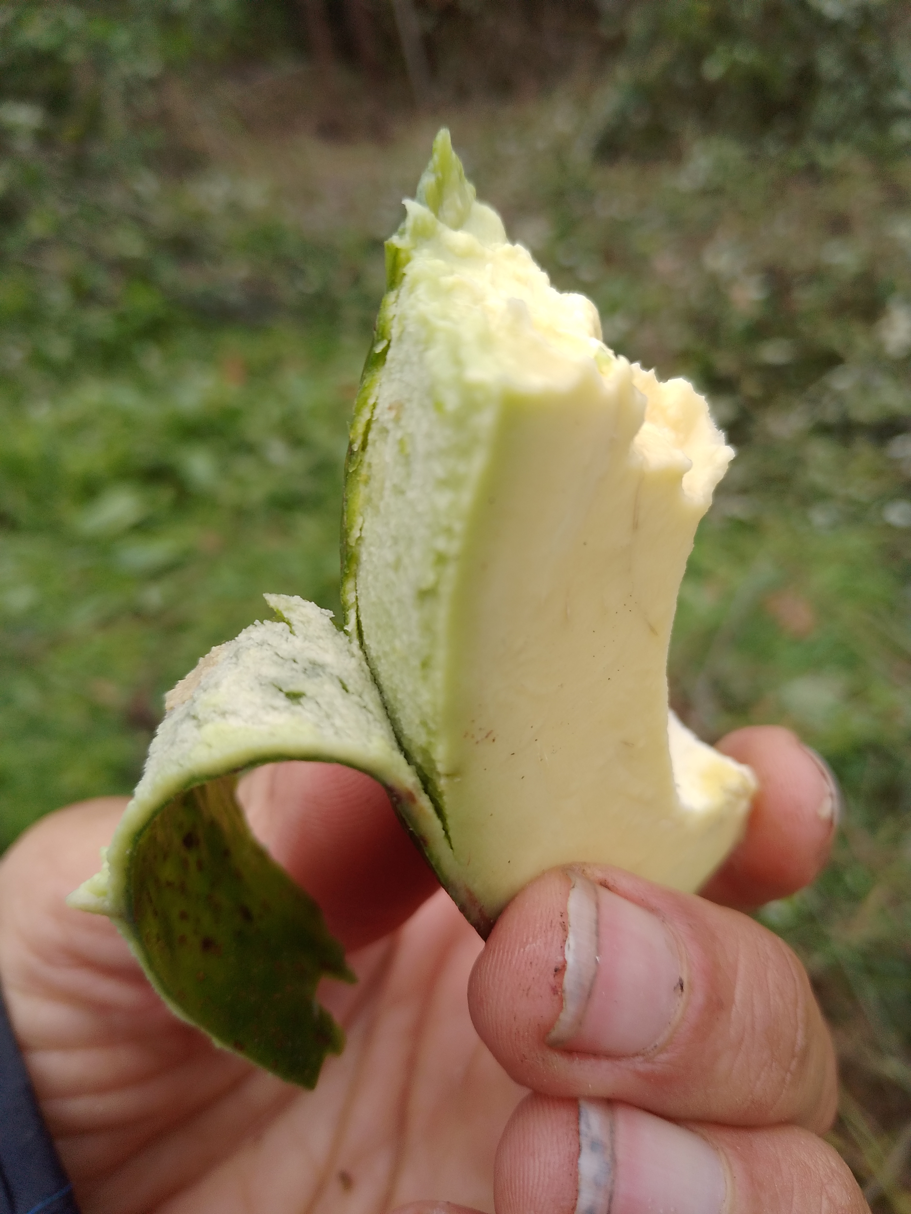 Le fruit (pas bien gras) est étonnamment sucré comme jamais je n'en ai mangé de semblable comme si quelqu'un y avait ajouté du sucre