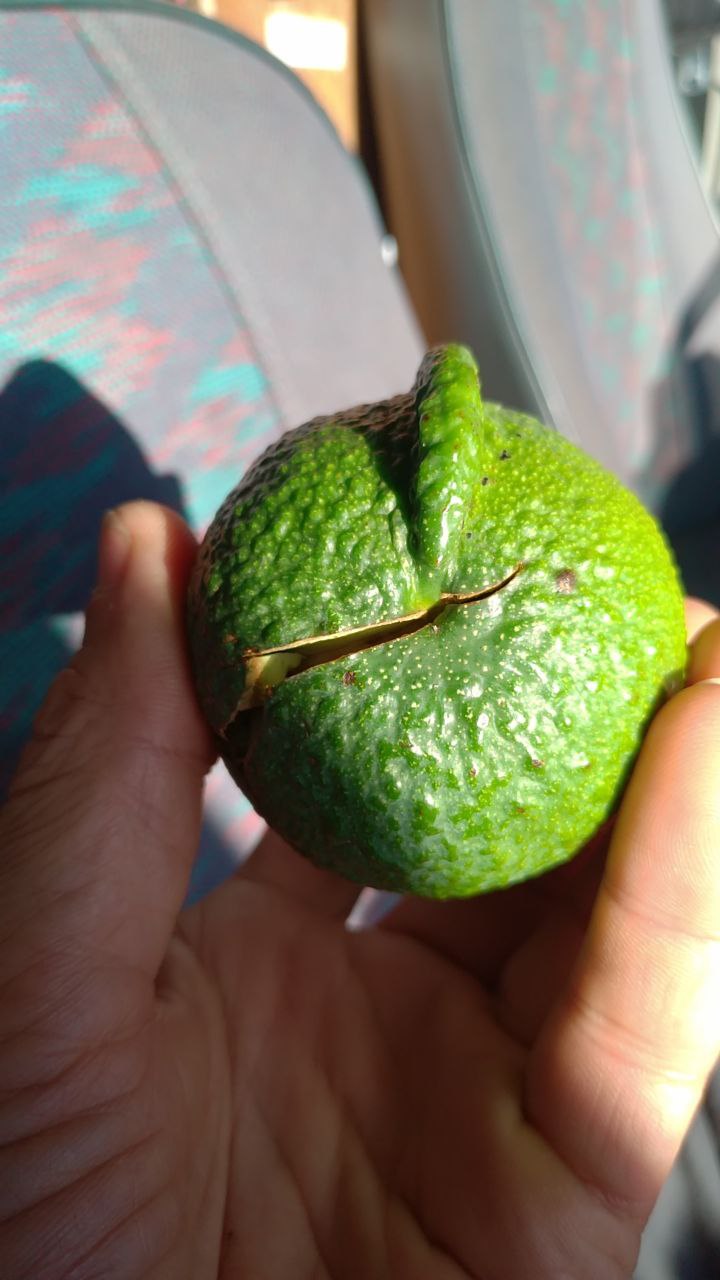 beaucoup de fruits sont munis d'une excroissance comme au milieu et en bas sur la photo où j'en tiens 3 dans ma main