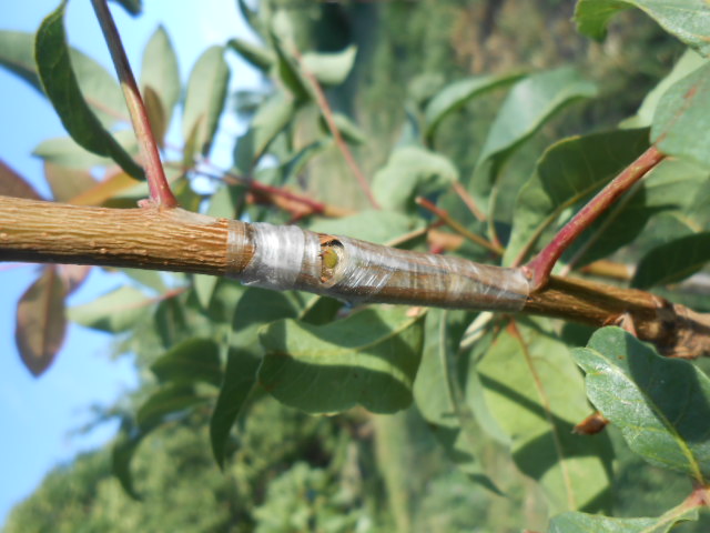 Greffes de pistachiers que j'ai fait sur deux jeunes francs en pleine terre, dans le sud Vaucluse, le 18 juin dernier.