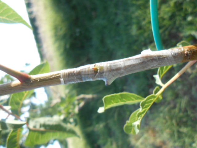 Greffes de pistachiers que j'ai fait sur deux jeunes francs en pleine terre, dans le sud Vaucluse, le 18 juin dernier.