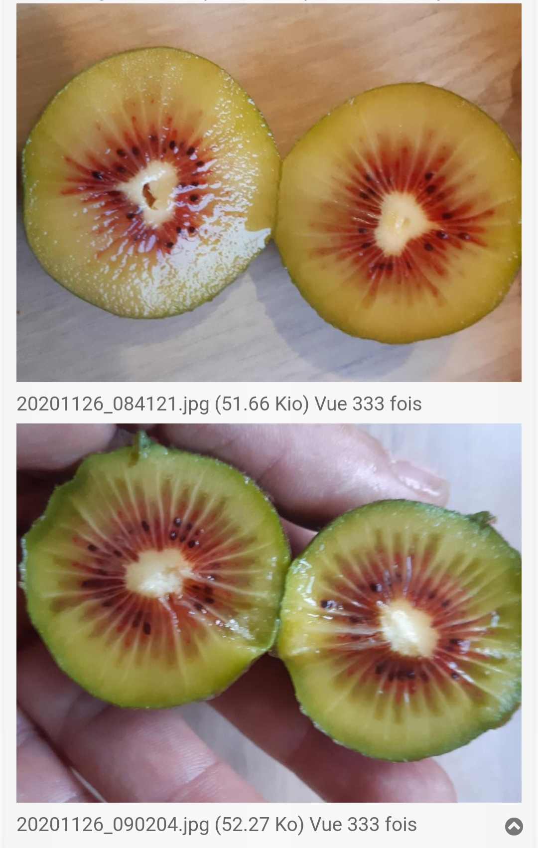 -Chang Bai Giant : très gros fruit applati pour le genre, sucré, de couleur vert, pollinisé par Weiki ou Issaï mâle. Plantation faite en automne 2020, a végété une partie de l'année, ses bourgeons se font constamment attaquer par les gastéropodes