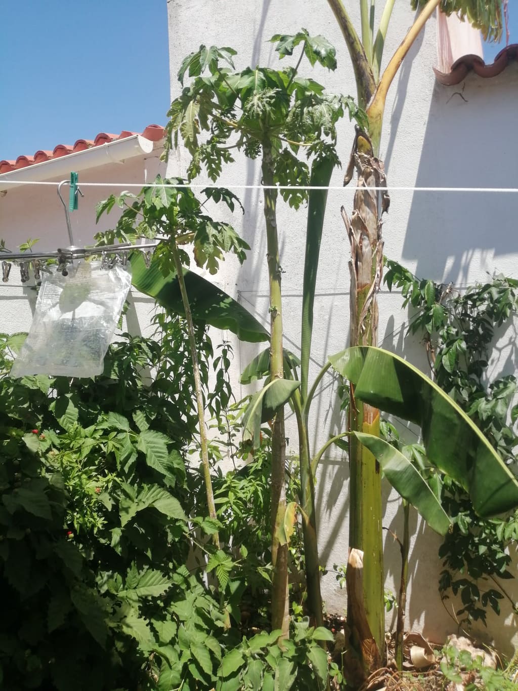 Oui il fait trés chaud je suis a quelques kilometre du reccord de chaleur portugais qui est de 47,3. Les plantes souffrent l été, meme les feuilles de bananier "brulent". Les papayes resistent mais elles ralentissent beaucoup leur croissance.