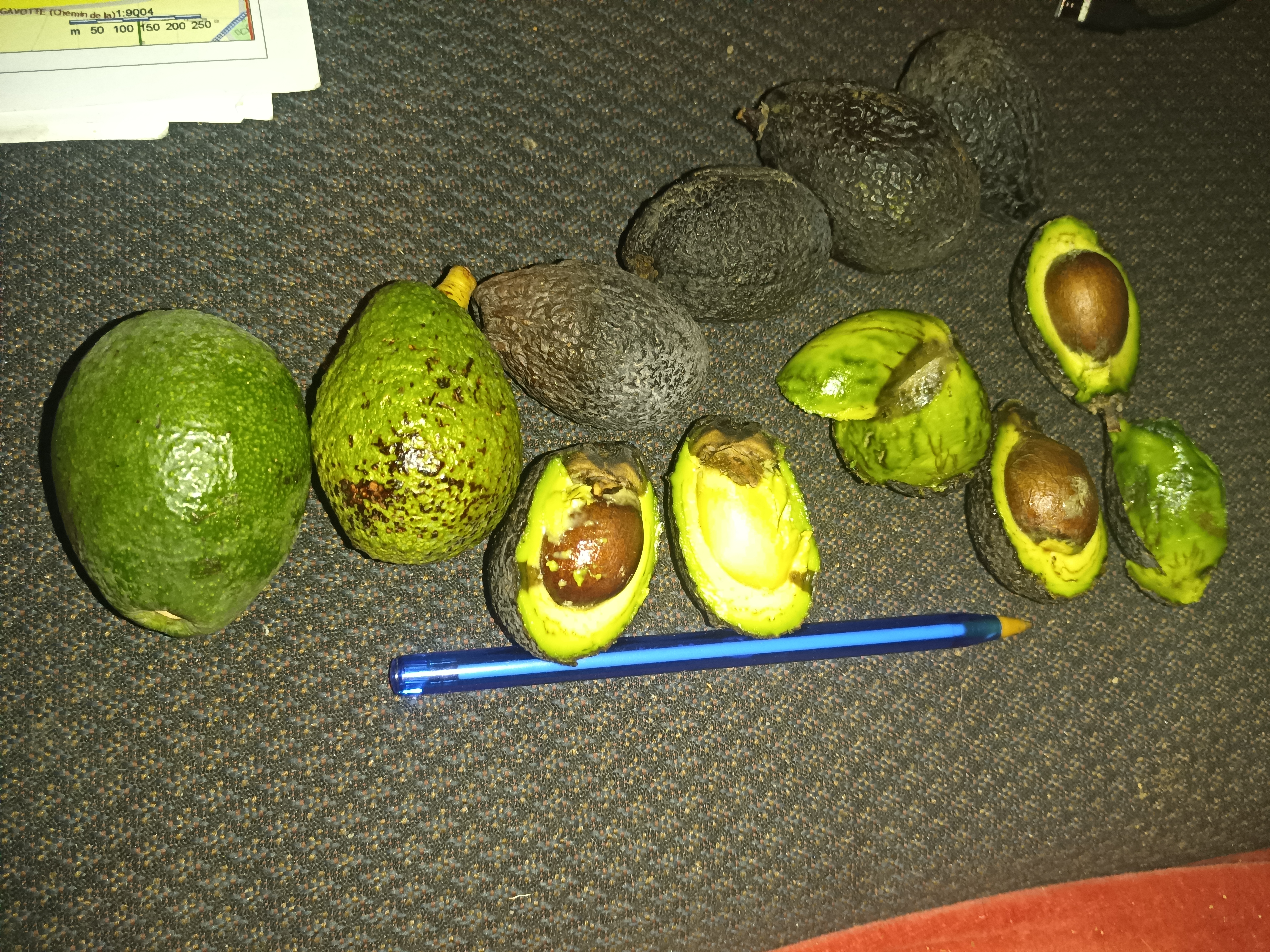 Le seul arbre de notre connaissance qui donne des avocats bacon qui sèchent sans rancir: immangeables verts lisses ni frippes, ils n'atteignent maturité que lorsqu'ils sont noirs rabougris, avec un goût de lait de coco concentré en poudre, presque sucrés, et un aspect très huileux.