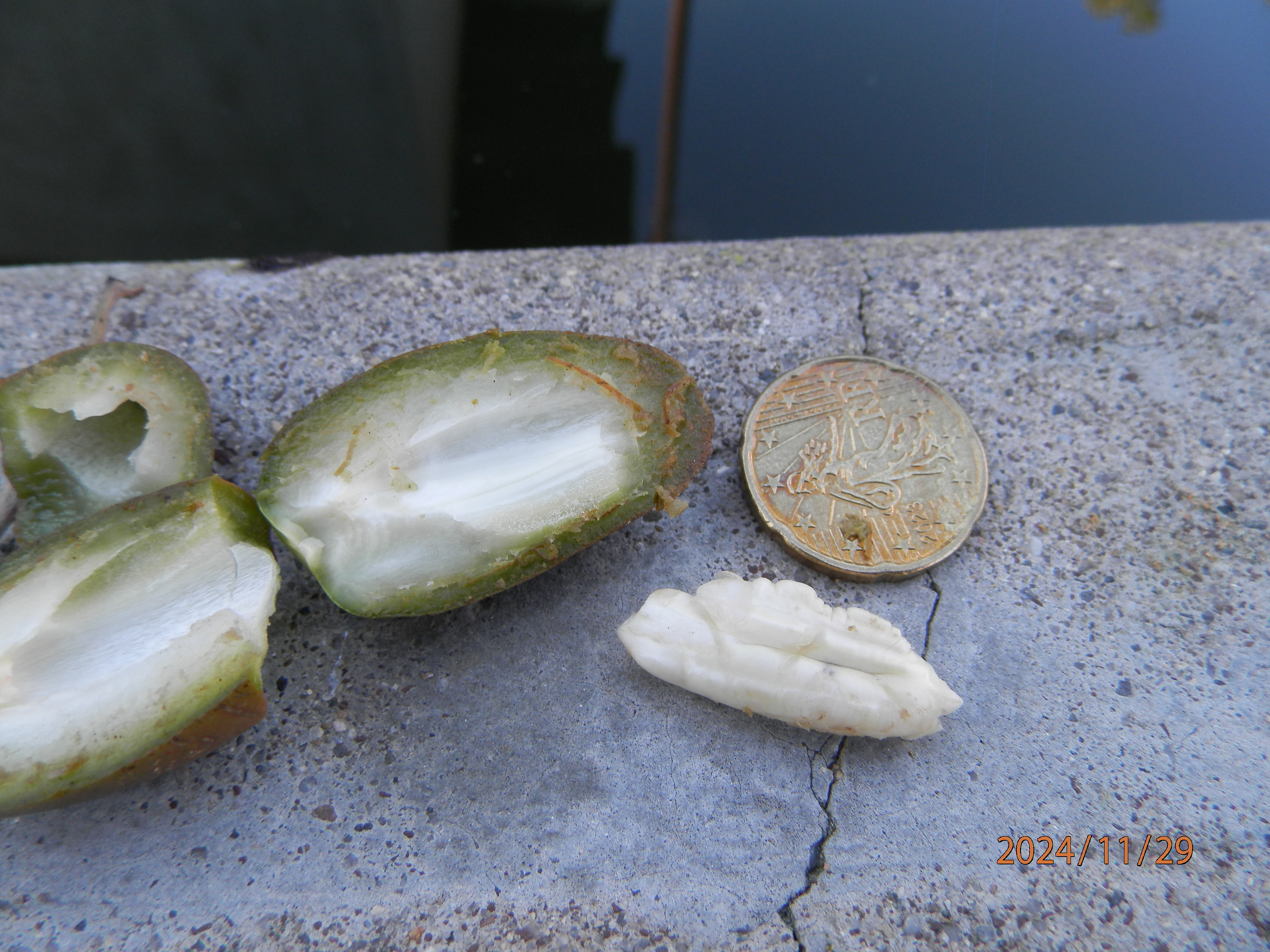 Fruits d'un pied femelle, 29 novembre 2024 ,il n'est pas mature mais semble vouloir le devenir .