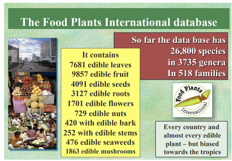 Cultiver les bonnes plantes, au bon endroit, permet de fournir aux populations les aliments nécessaires pour se nourrir. La base de données consultable de Food Plants International comprend la liste des plantes comestibles : http://www.foodplantsinternational.com