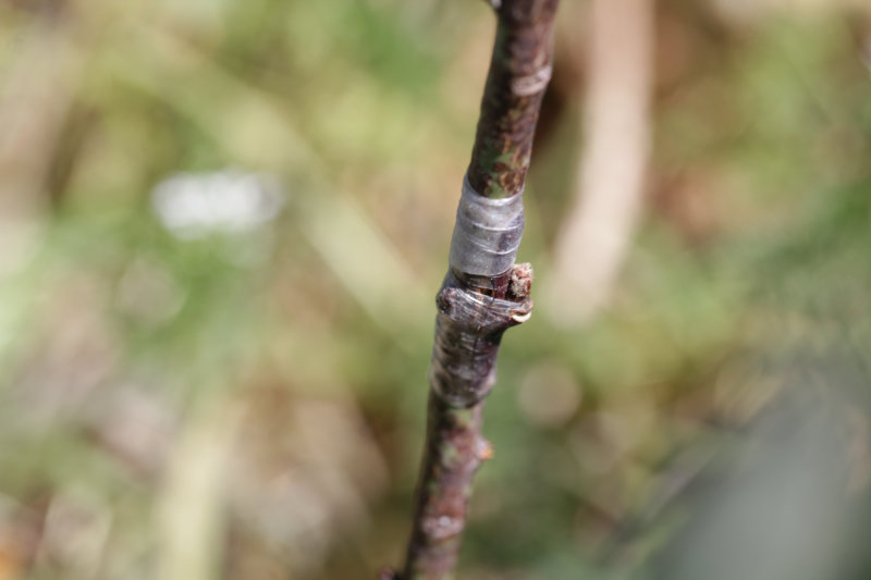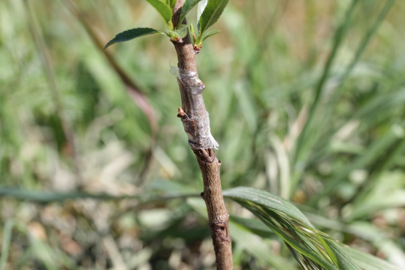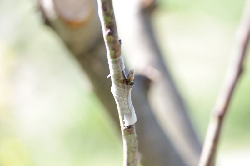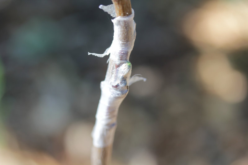 On imagine bien que la précision de l’assemblage est un facteur limitant. Comment la greffe pourrait-elle prendre si les tissus ne sont pas en contact ? Il faut des outils bien tranchants pour effectuer une découpe nette sans filament qui viendrait perturber la soudure. Il faut également bien nouer l’ensemble : si l’air passe entre le porte-greffe et le greffon l’ensemble va se de-sécher et empêcher toute soudure. Au besoin, englobez le bourgeon sous un tour de ruban buddy tape ! Le bourgeon est capable de le percer.