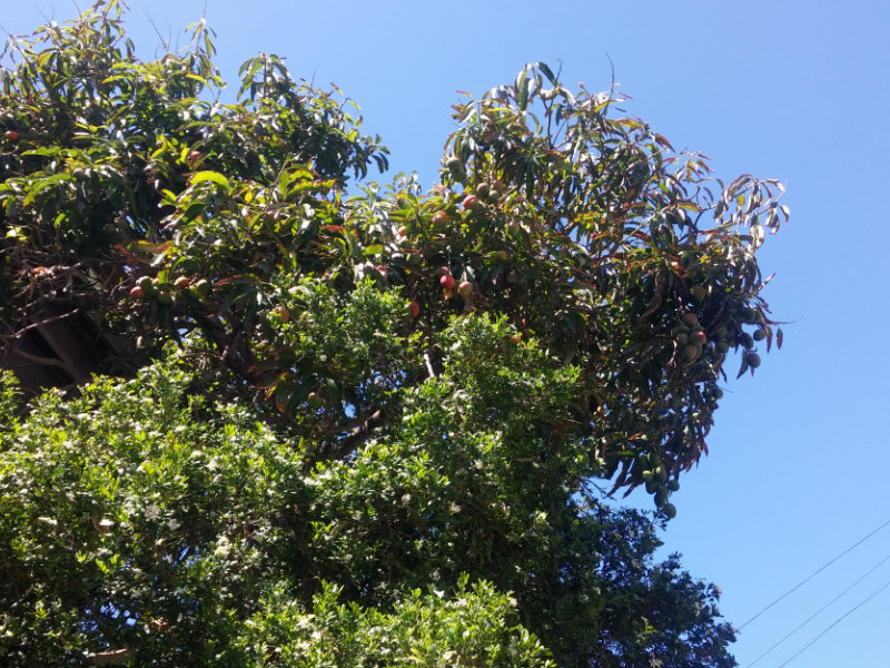 L’océan : la proximité de l’océan – énorme tampon thermique – favorise la douceur. C’est pour cette raison que sur la façade atlantique on peut trouver des cocotiers qui fructifient (merci à Nelio de m’avoir informé). Tout proche de l’océan, certaines plantes opportunistes en profitent pour fructifier hors saison. C’est le cas à Ponta do Sol où un manguier portaient des fruits mûrs !