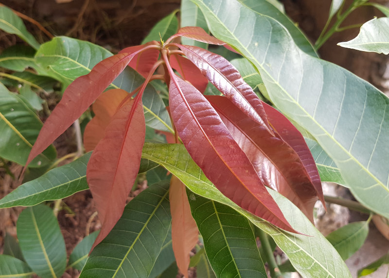 Je ne reviendrai pas sur le débat de la rusticité des manguiers. Je n’ai pas assez de recul pour argumenter dans un sens ou dans un autre. En revanche, je constate que certains manguiers sont plus vigoureux que d’autres. Et si la rusticité proclamée du porte-greffe Gomera-3 ne serait pas plutôt une vivacité accrue ? En effet, sur mes quatres manguiers, trois ont végété cette année. Ils n’ont pas poussé. En revanche, le Gomera-3 (le porte-greffe du manguier Osteen de mon jardin du bureau) pousse ardemment ! Et la partie Osteen greffée n’a pas évolué.