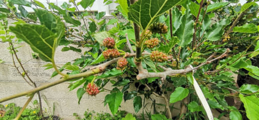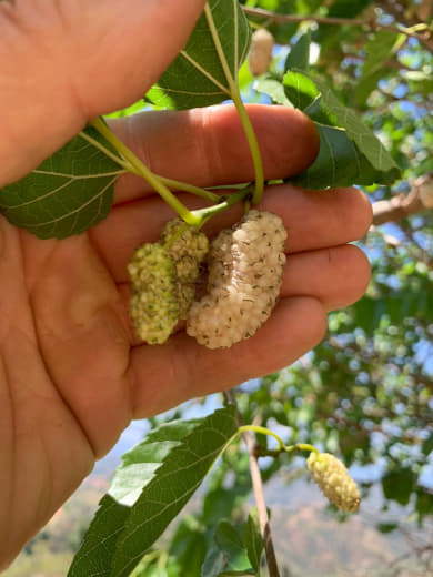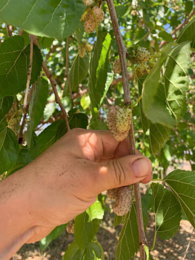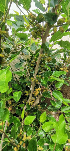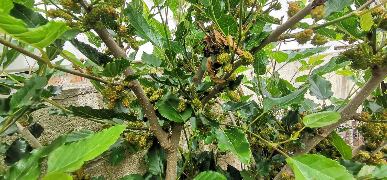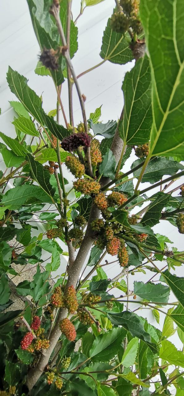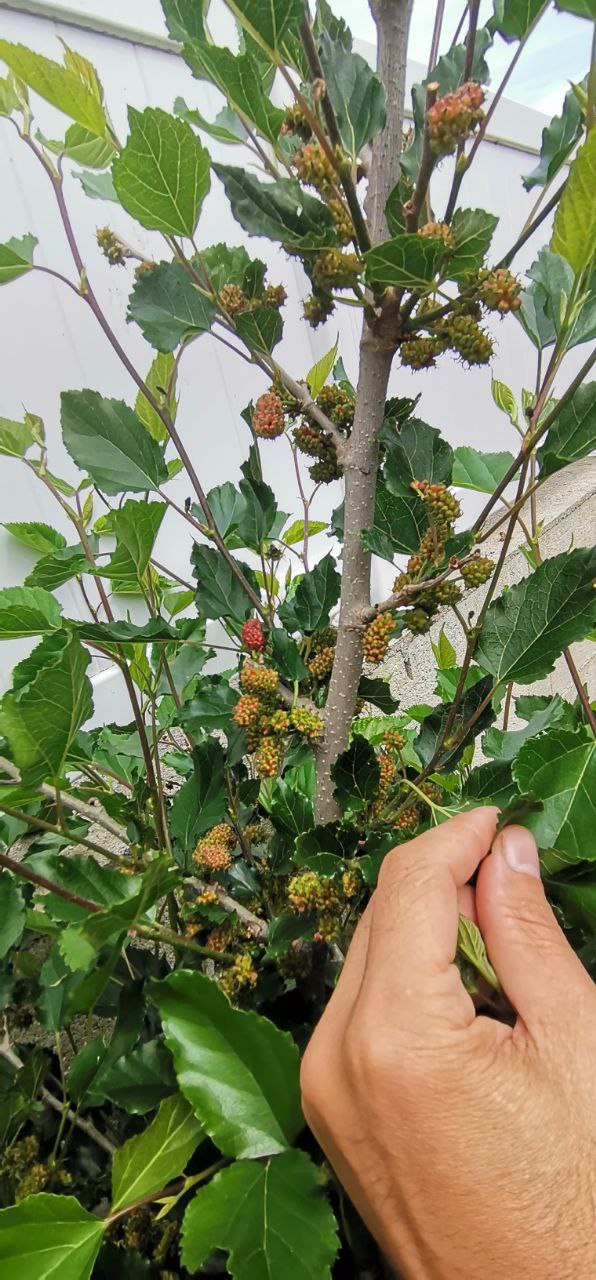 Fait intéressant, ça signifie aussi que le pied est capable de fructifier sur les branches de l'année, plutôt rare chez le mûrier, qui, sur ce que j'observais jusqu'à présent fructifie sur des branches de deux ans !