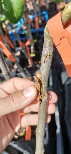 Le pied "Pakistan" que j'ai chez moi, tout jeune, commandé le 14/11, n'est pas reparti de tige, cette dernière bien que lignifiée, ayant vraisemblablement (mais je n'en suis pas sûr) gelé à -8°C, en tout cas, elle s'est asséchée et ne repartais pas.