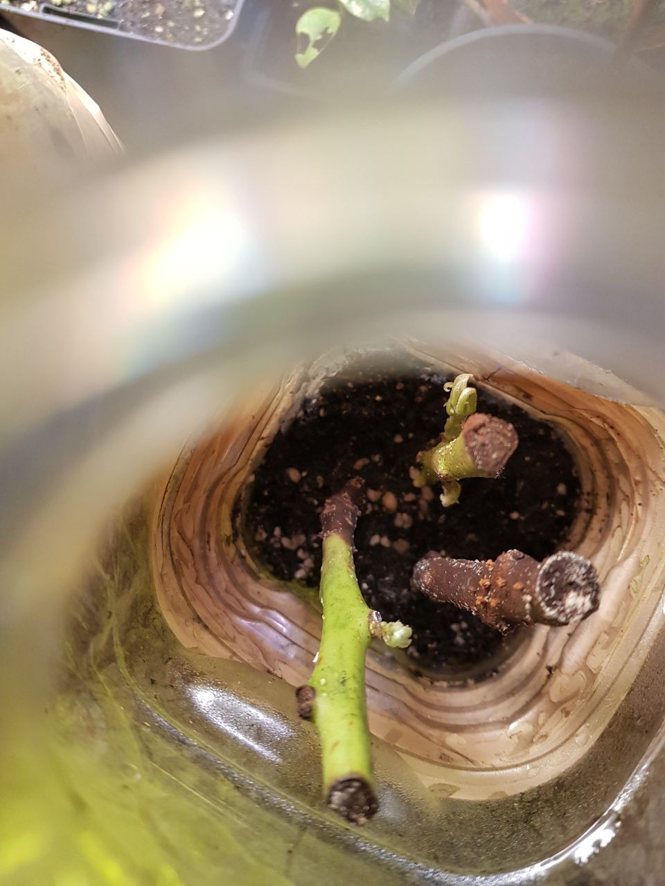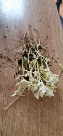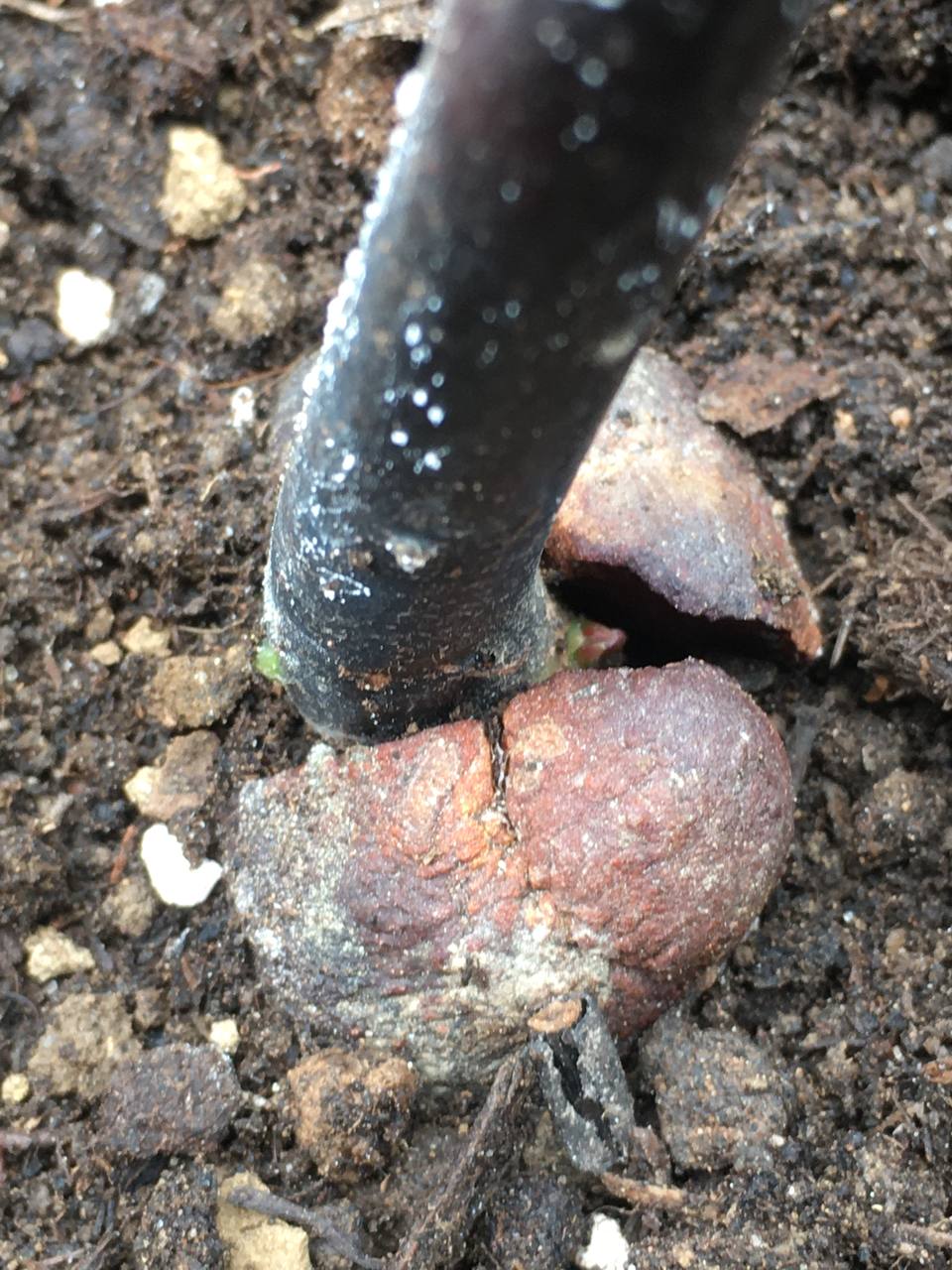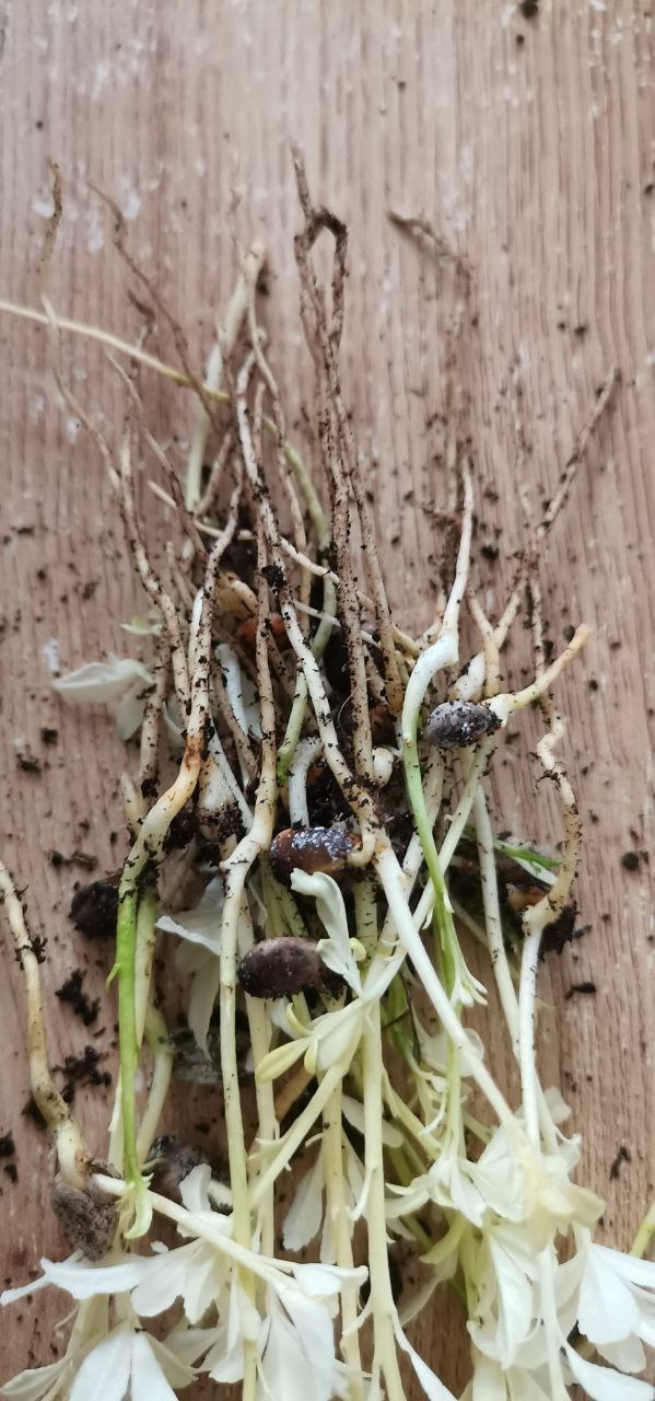 Par contre, le pied est reparti de souche, et formait une longue fleur typique de l'espèce sur cette jeune tige encore bien vert, je pense donc que le pied est issu d'une bouture. (J'ai fait sauter la fleur, ne voulant nuire au développement du pied, désireux de favoriser au mieux la conservation de la variété)