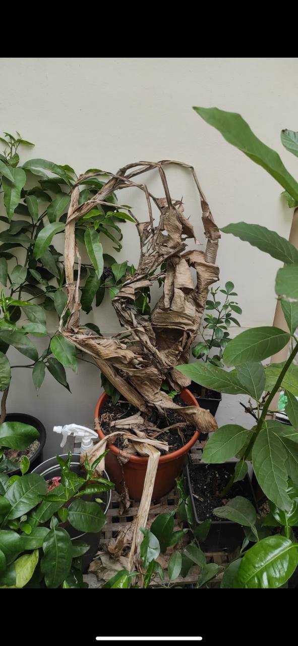 Je l'ai planté à l'extérieur l'année dernière parce qu'il n'y avait pas de place dans la serre. Je pensais donc qu'il était fichu. Cette année, nous avons eu des températures négatives de 9° avec plusieurs jours consécutifs sous le point de congélation. Je ne l'ai pas protégé non plus.