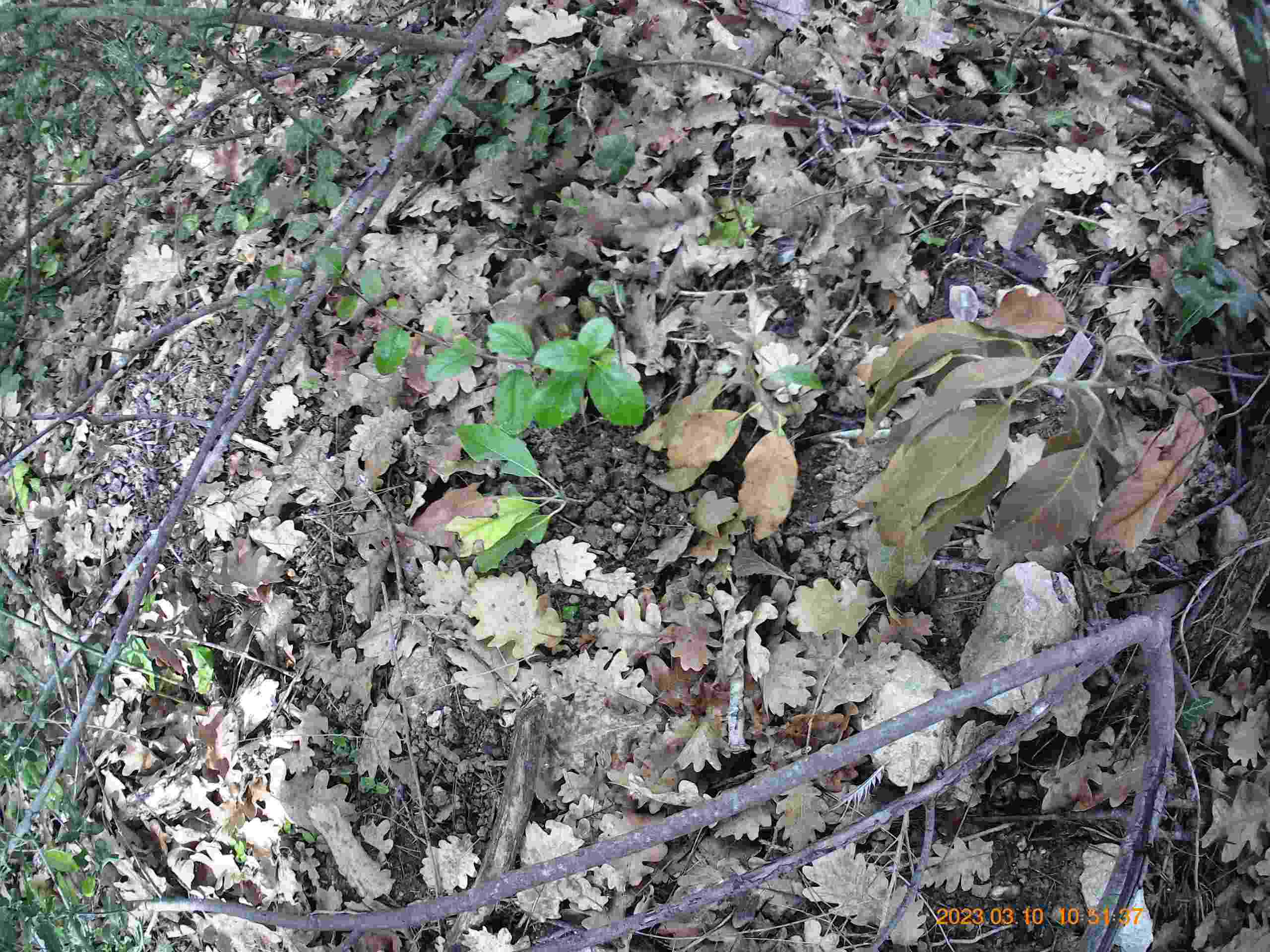 rien de normal ici. en changeant de batterie le datage s'est déréglé. en revanche il montre que la photo sans neige a été prise 15H avant, mais maintenant les feuilles sont toujours aussi fonctionnelles, et la nouvelle feuille toujours aussi belle :)