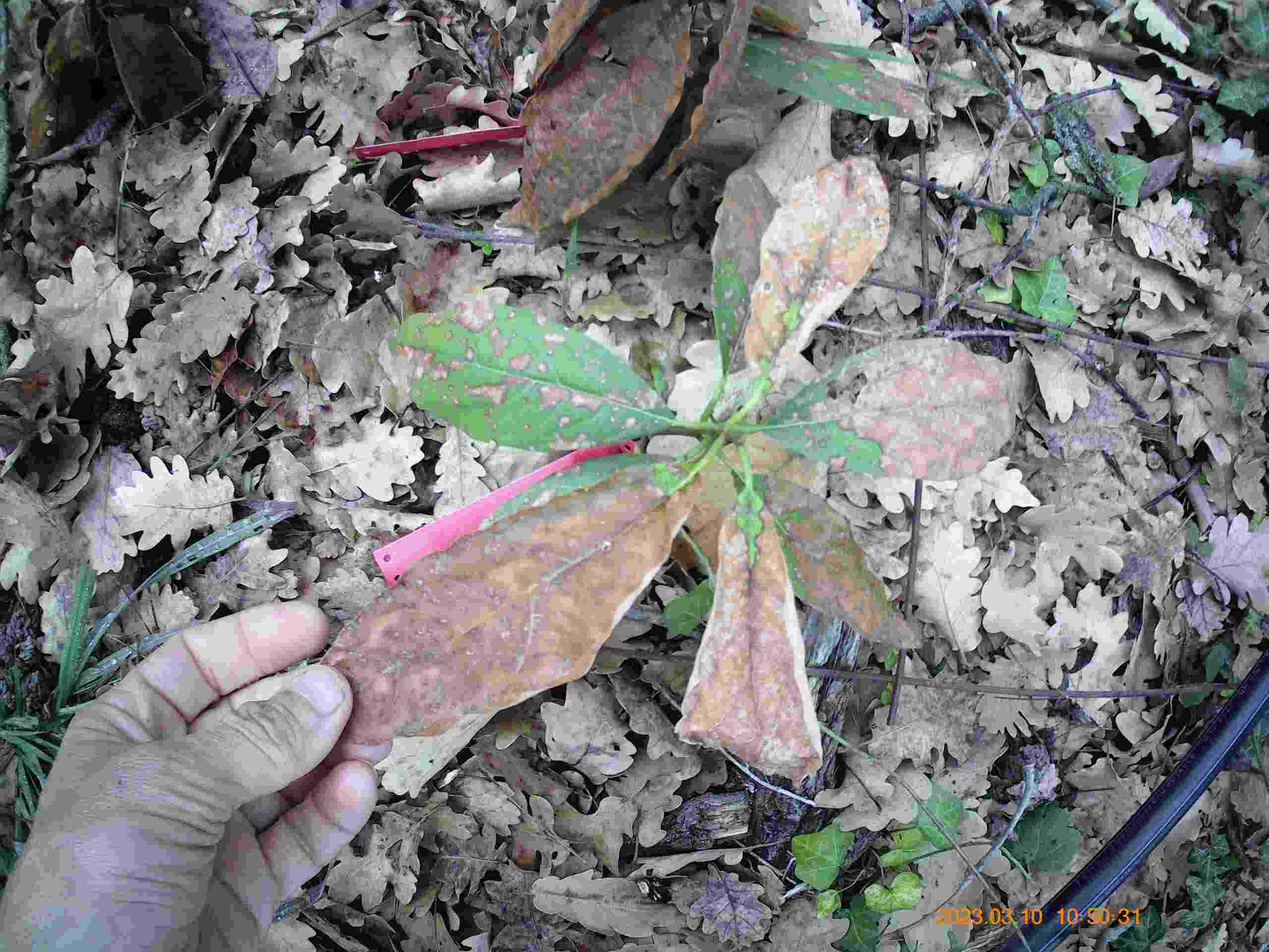 germination retardataire dans le treillis ligne 10, 7ème case (semis: 12 mois avant)
