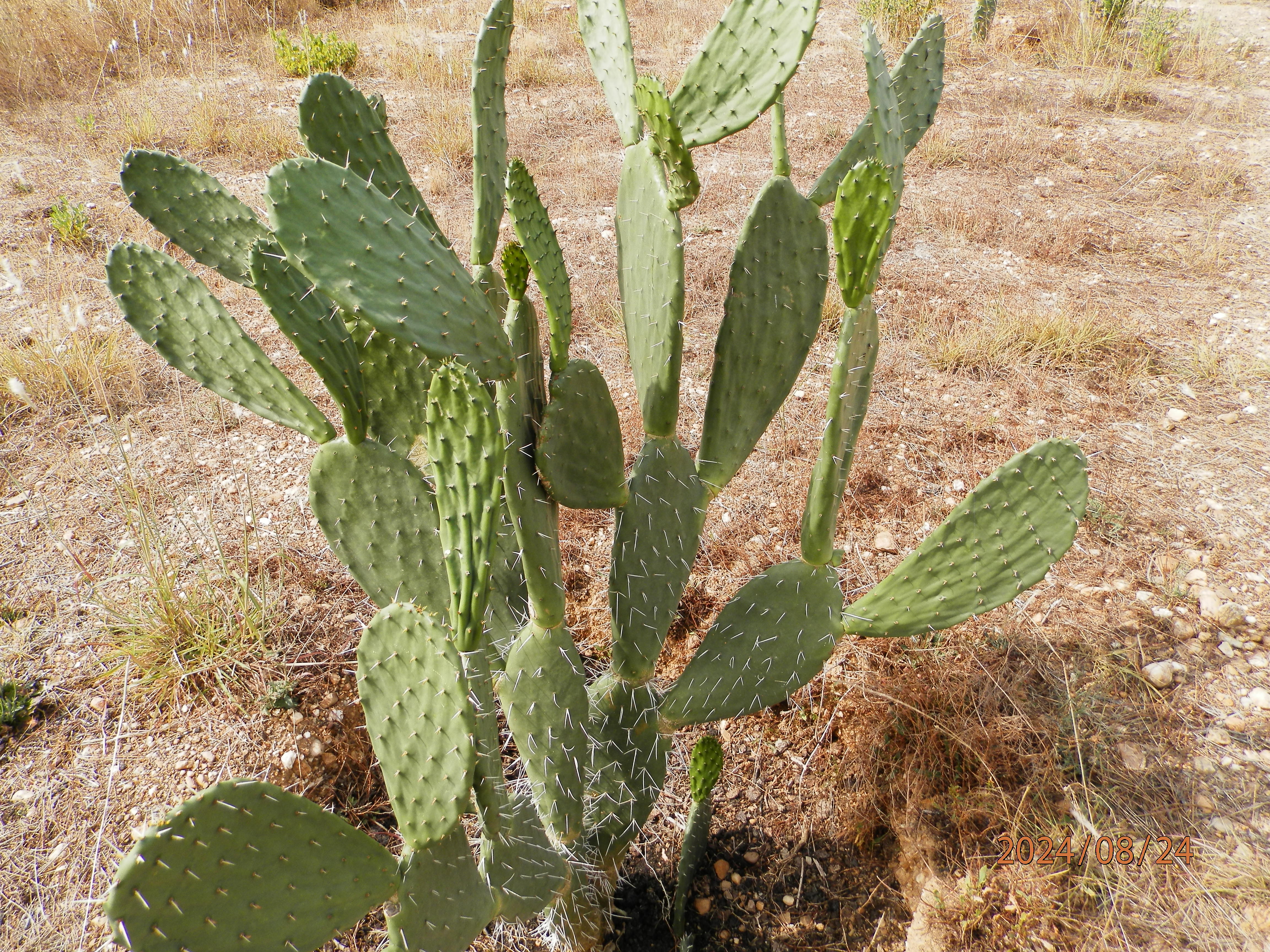 Opuntia ficus indica à fruits géants .Pieds de deux ans à partir d'une seule raquette .Hauteur 1m 70 .Pas de fleurs ni de fruits mais suis optimiste .Les chèvres et moutons ont dévoré par deux fois la totalité de la plantation sauf ceux là .