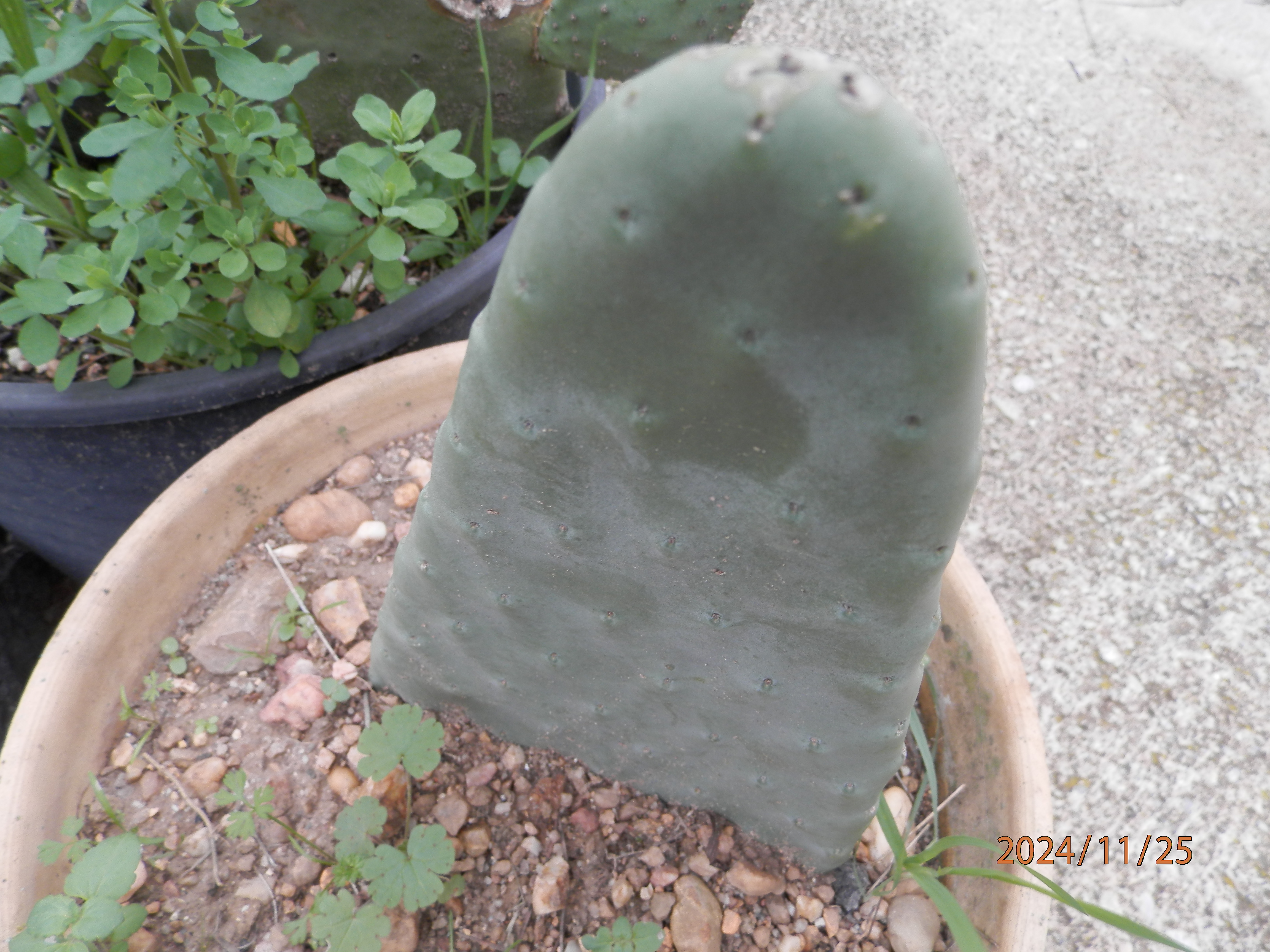 Opuntia ficus indica santa maria ,Semble bien s'adapter dans son pot ......affaire à suivre !